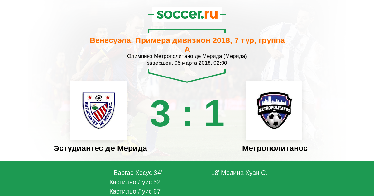 Протокол матча Эстудиантес Мерида против Метрополитанос