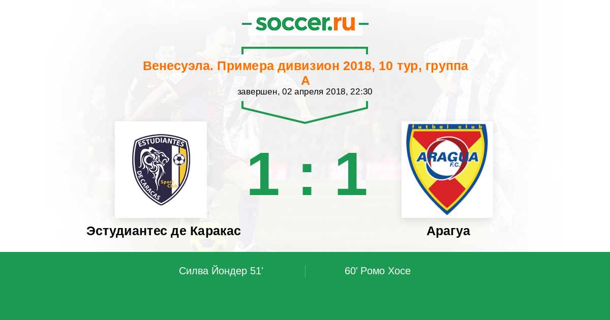 Протокол матча Эстудиантес де Каракас против Арагуа