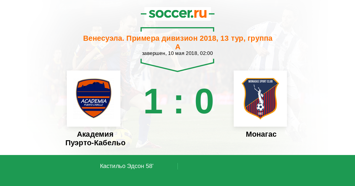 58' (1:0) Кастильо Эдсон (18)