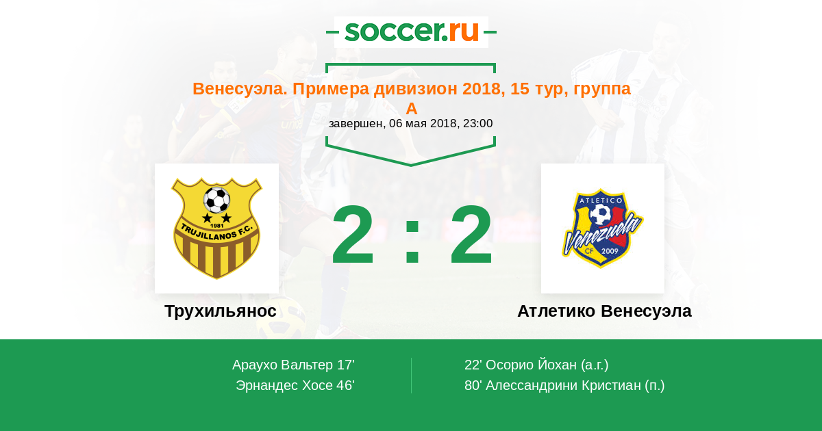 Протокол матча Трухильянос против Атлетико Венесуэла