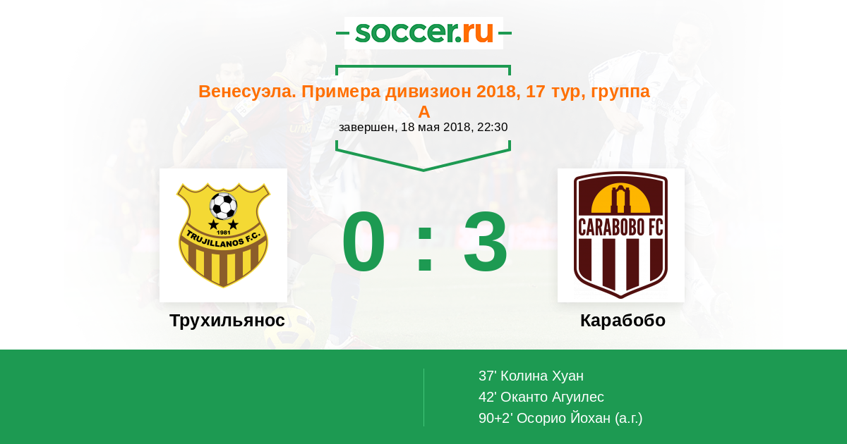 Протокол матча Трухильянос против Карабобо
