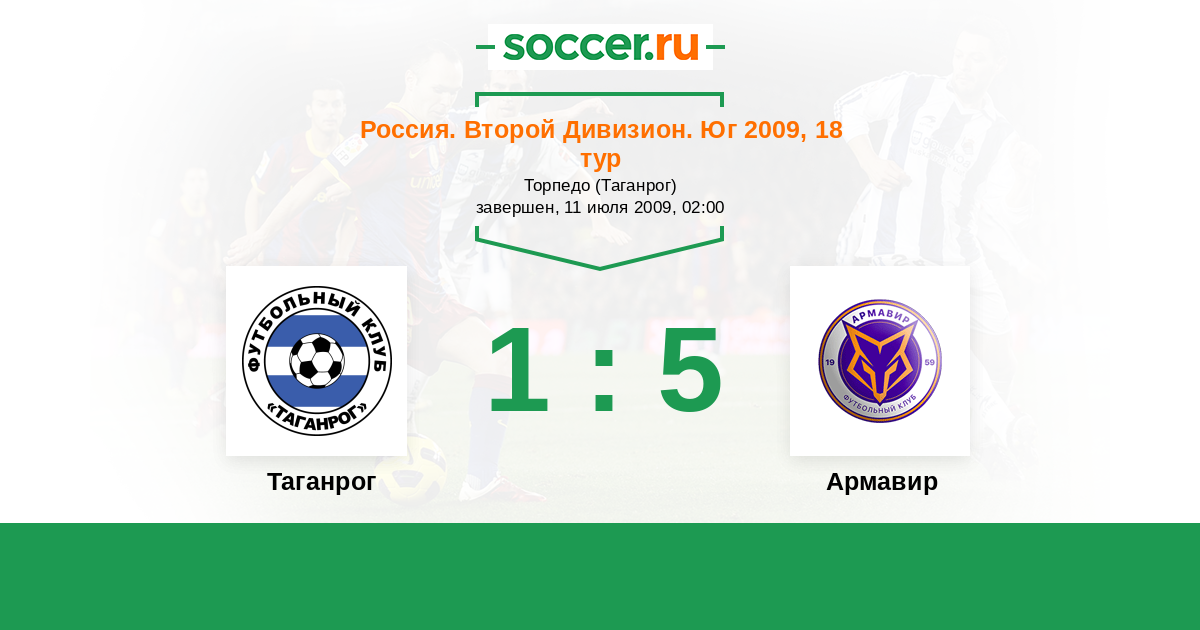 Россия. Вторая лига. Группа 1 08.07.2011 Таганрог Логотип футбольный клуб Таганрог 0:1 Логотип футбольный клуб Торпедо Армавир Торпедо Армавир