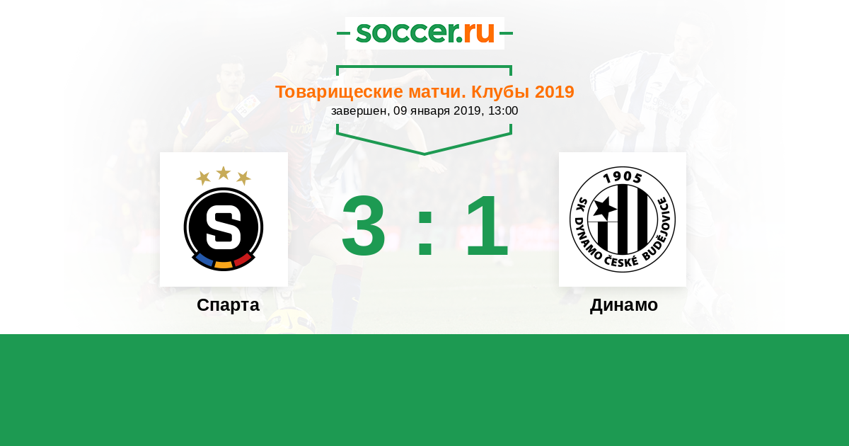 Товарищеские матчи. Клубы 06.07.2018 Динамо Логотип футбольный клуб Динамо (Ческе-Будеевице) 2:1 Логотип футбольный клуб Спарта (Прага) Спарта