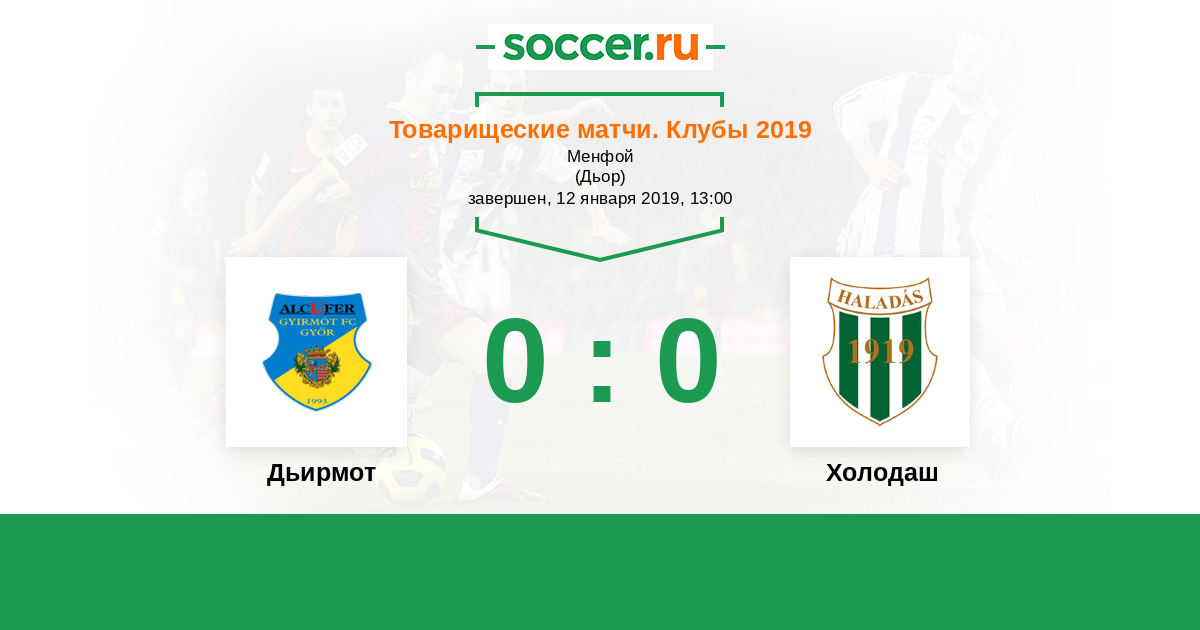 Венгрия. Чемпионат II 08.12.2019 Холодаш Логотип футбольный клуб Холодаш (Сомбатхей) 0:1 Логотип футбольный клуб Дьирмот (Дьёр) Дьирмот