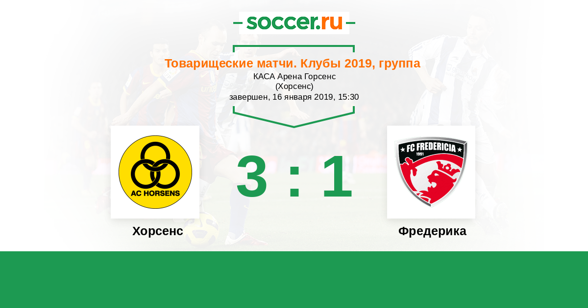 Товарищеские матчи. Клубы 17.07.2021 Хорсенс Логотип футбольный клуб Хорсенс 2:0 Логотип футбольный клуб Фредерика Фредерика