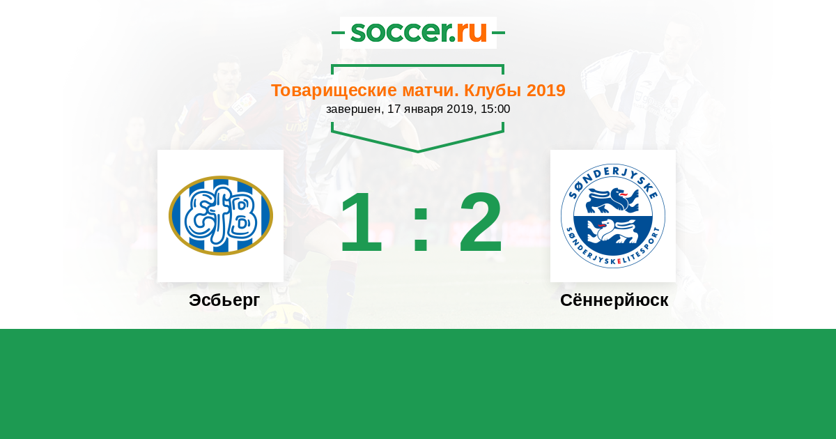 Дания. Суперлига 17.02.2017 Эсбьерг Логотип футбольный клуб Эсбьерг 3:0 Логотип футбольный клуб Сённерйюск (Хадерслев) Сённерйюск