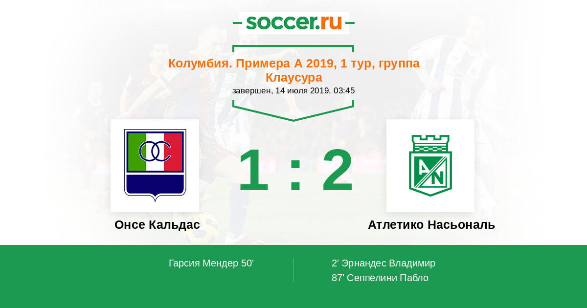 Протокол матча Онсе Кальдас против Атлетико Насьональ