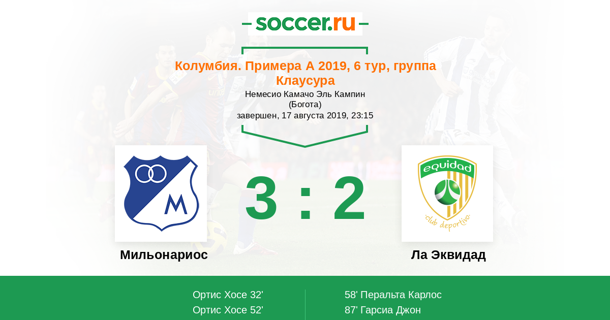 Протокол матча Мильонариос против Ла Эквидад