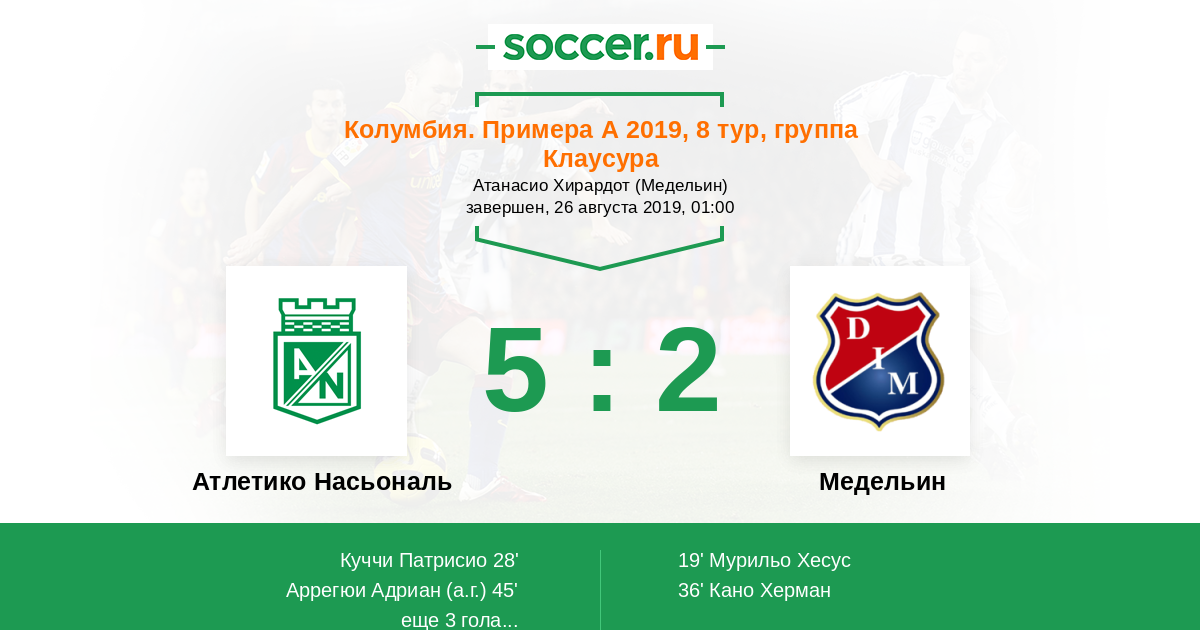 36' (1:2) Кано Херман (14) (Диас Йесид (27))