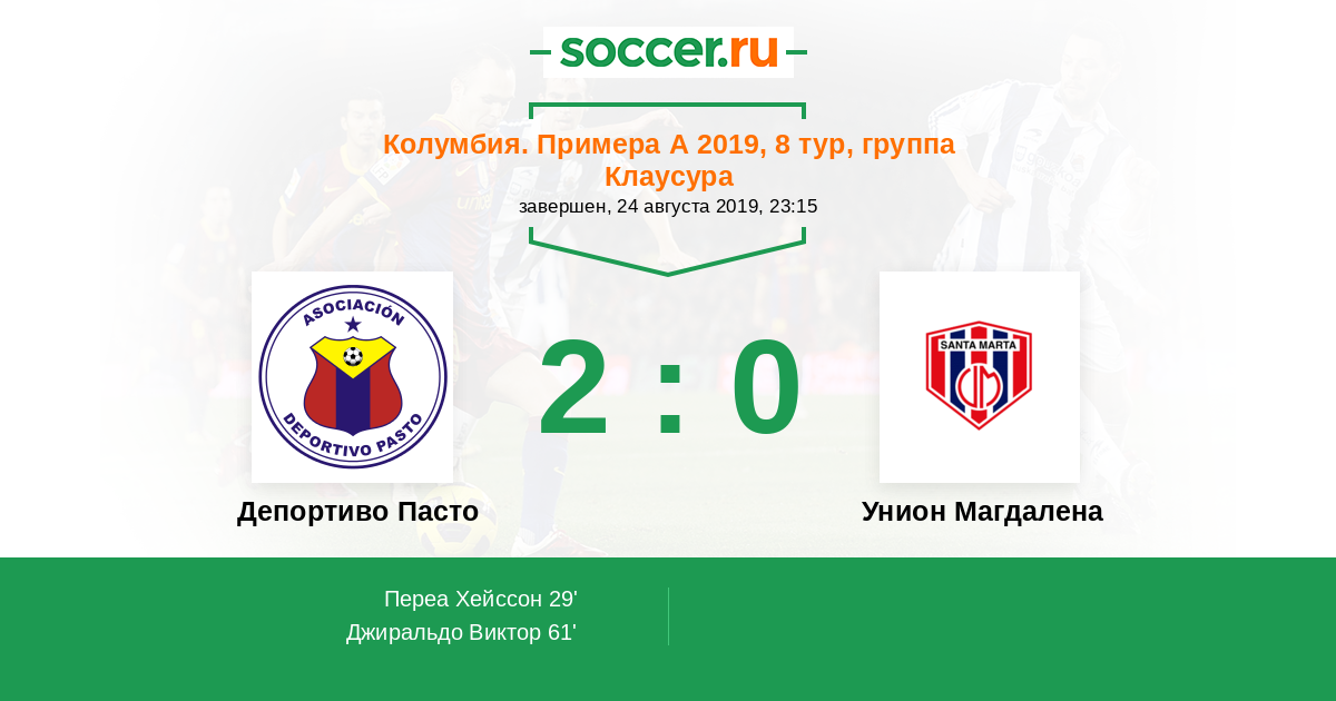 Протокол матча Депортиво Пасто против Унион Магдалена