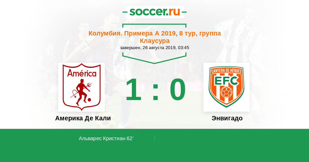 62' (1:0) Альварес Кристиан (8) (Сиерра Карлос (4))