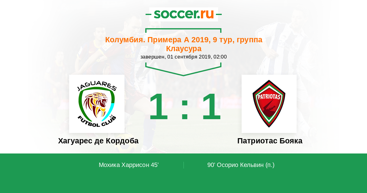 Протокол матча Хагуарес де Кордоба против Патриотас Бояка