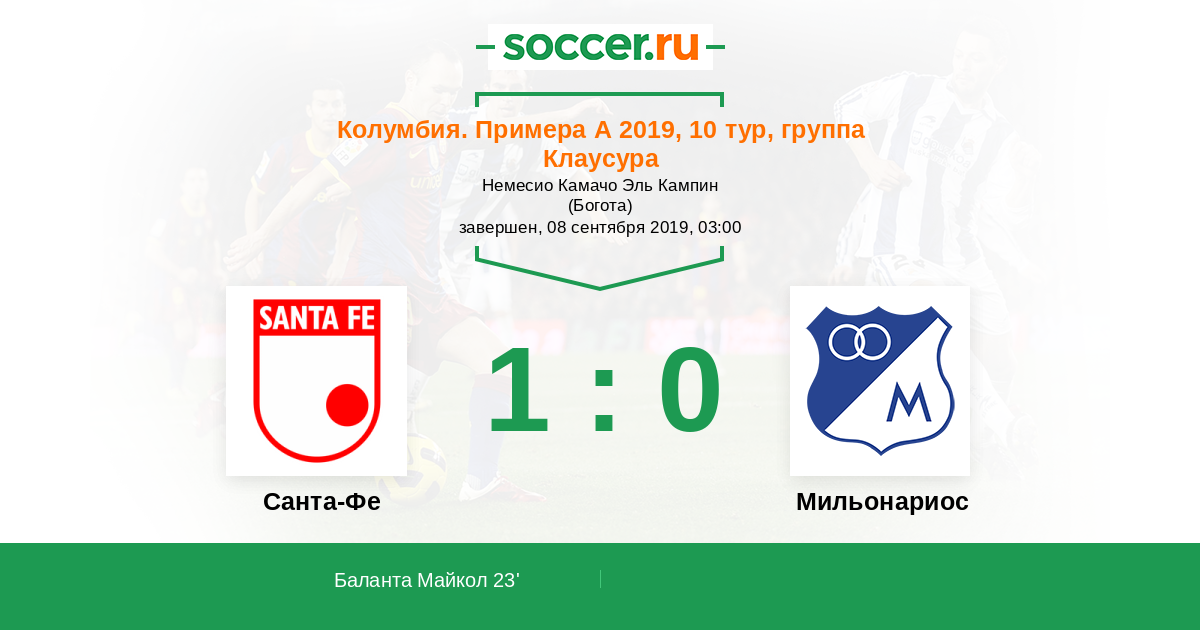 23' (1:0) Баланта Майкол (27) (Перес Андрес (5))