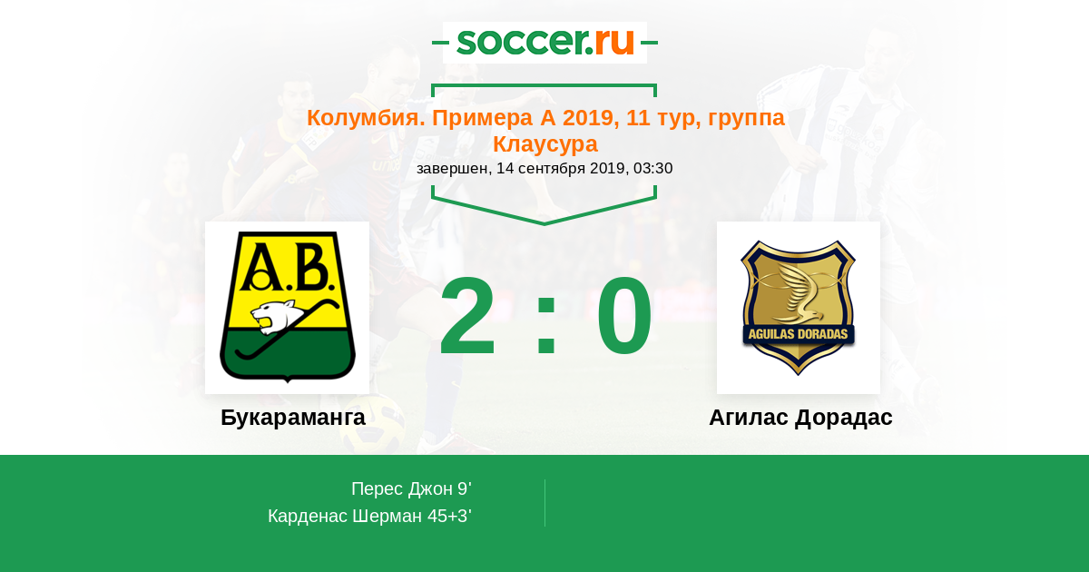 9' (1:0) Перес Джон (10) (Карденас Шерман (7))