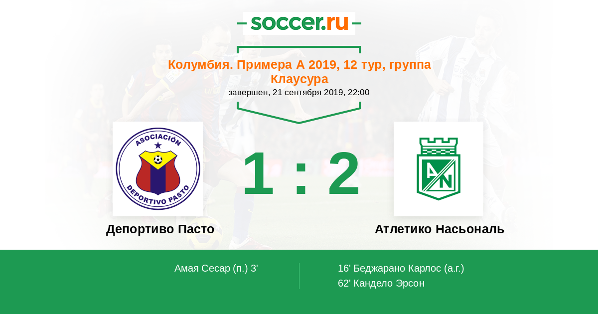 Протокол матча Депортиво Пасто против Атлетико Насьональ