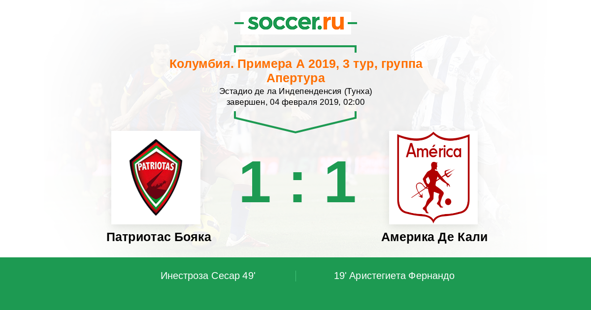 Протокол матча Патриотас Бояка против Америка Де Кали