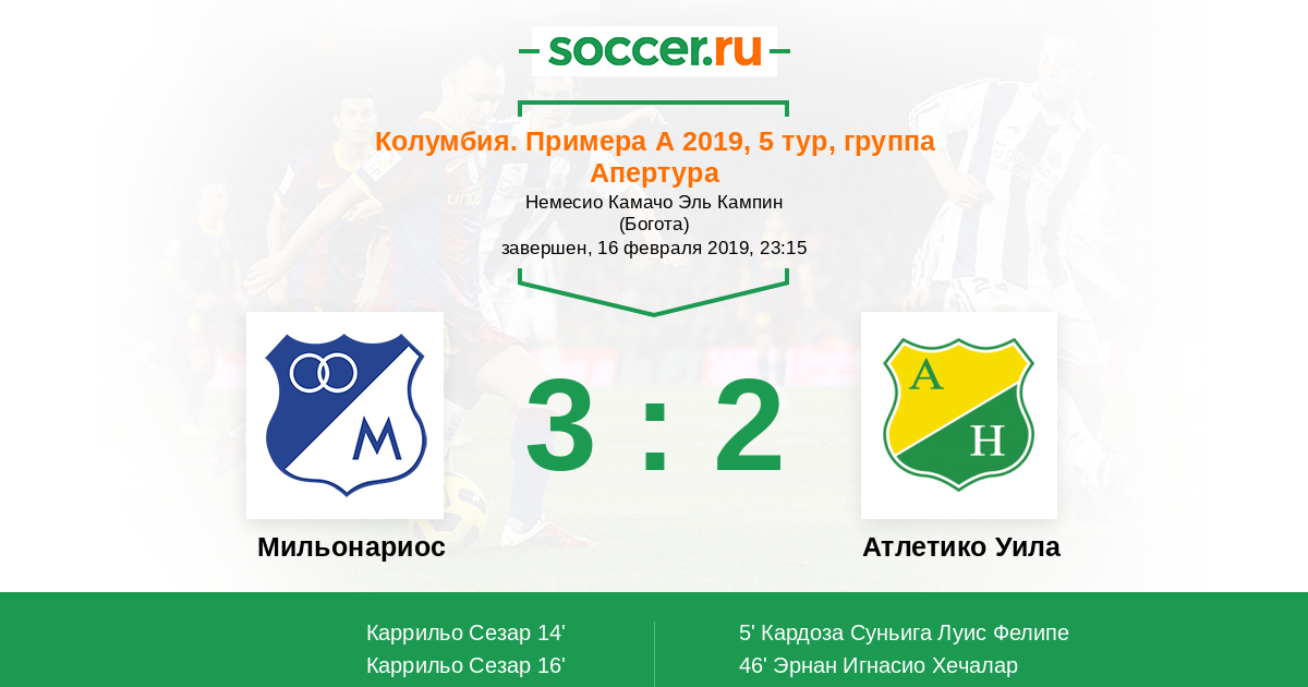 Протокол матча Мильонариос против Атлетико Уила