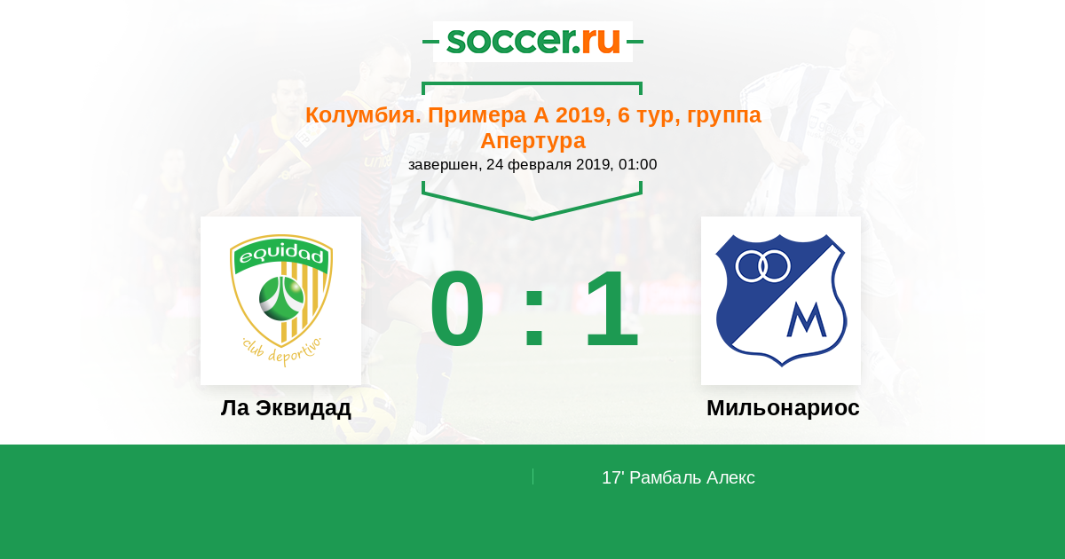 Протокол матча Ла Эквидад против Мильонариос