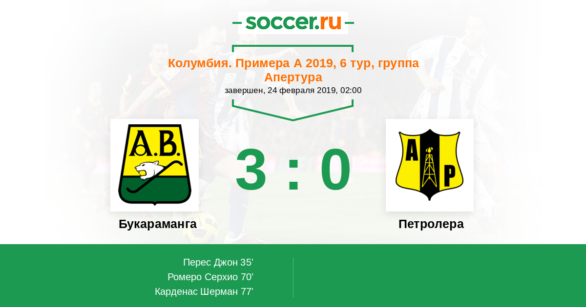 Протокол матча Букараманга против Петролера