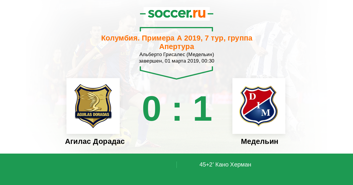 45+2' (0:1) Кано Херман (14) (Перлаза Элвис (13))
