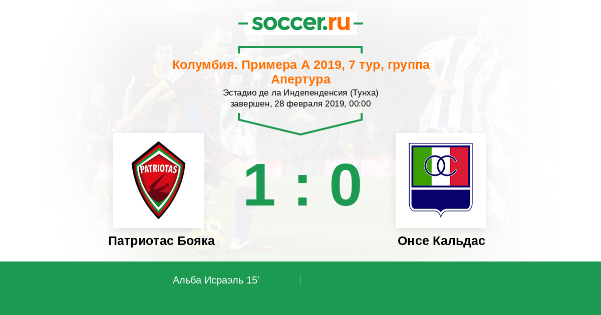 Протокол матча Патриотас Бояка против Онсе Кальдас