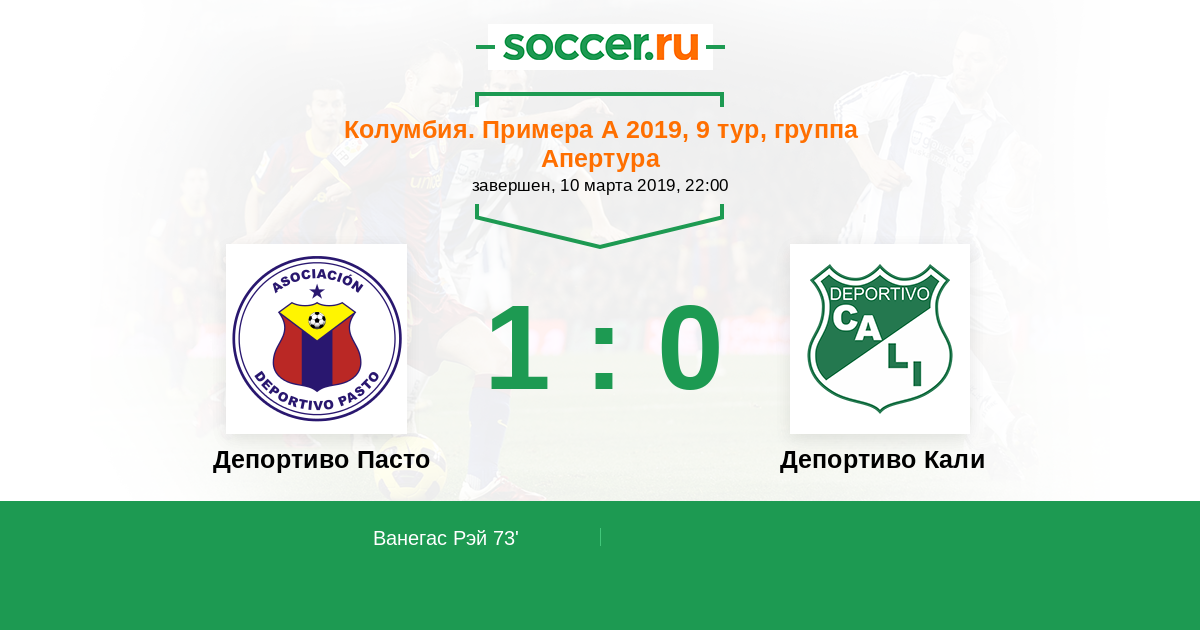 Протокол матча Депортиво Пасто против Депортиво Кали