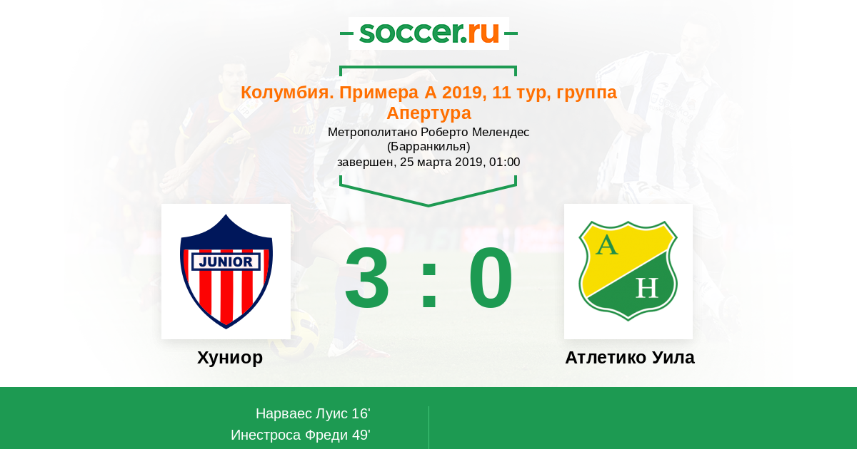 Протокол матча Хуниор против Атлетико Уила