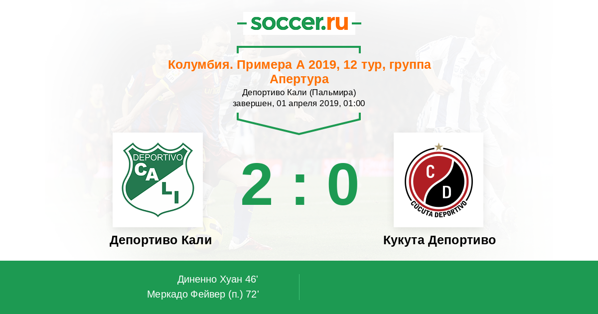 Протокол матча Депортиво Кали против Кукута Депортиво