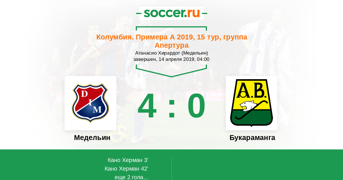 42' (2:0) Кано Херман (14) (Эчаваррия Кристиан (11))