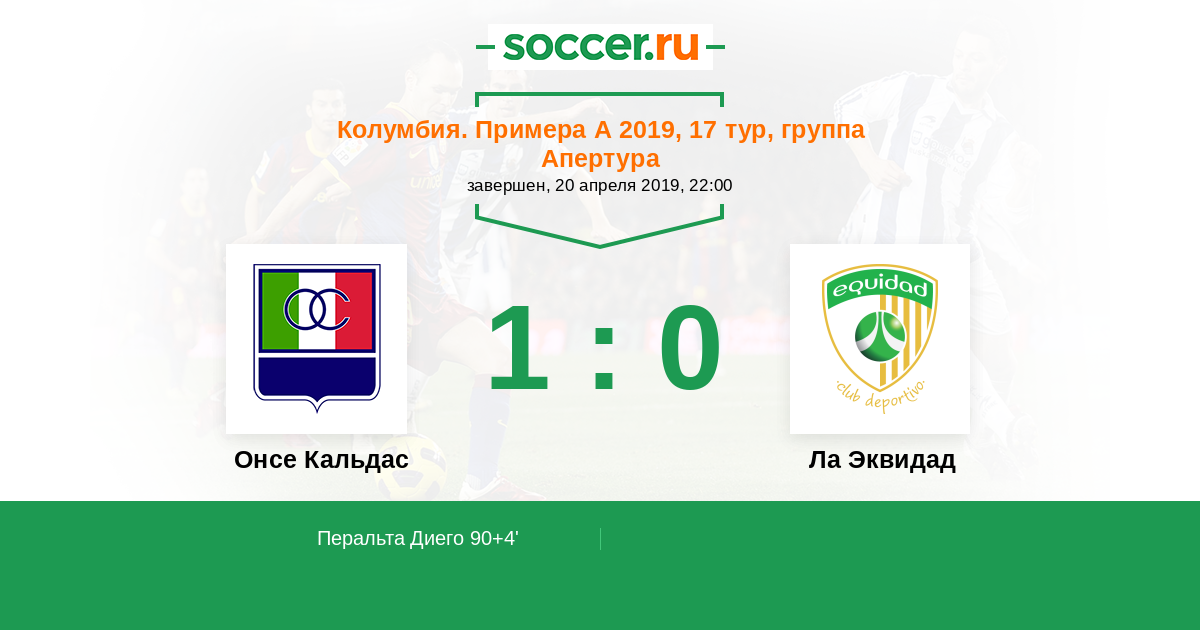 Протокол матча Онсе Кальдас против Ла Эквидад