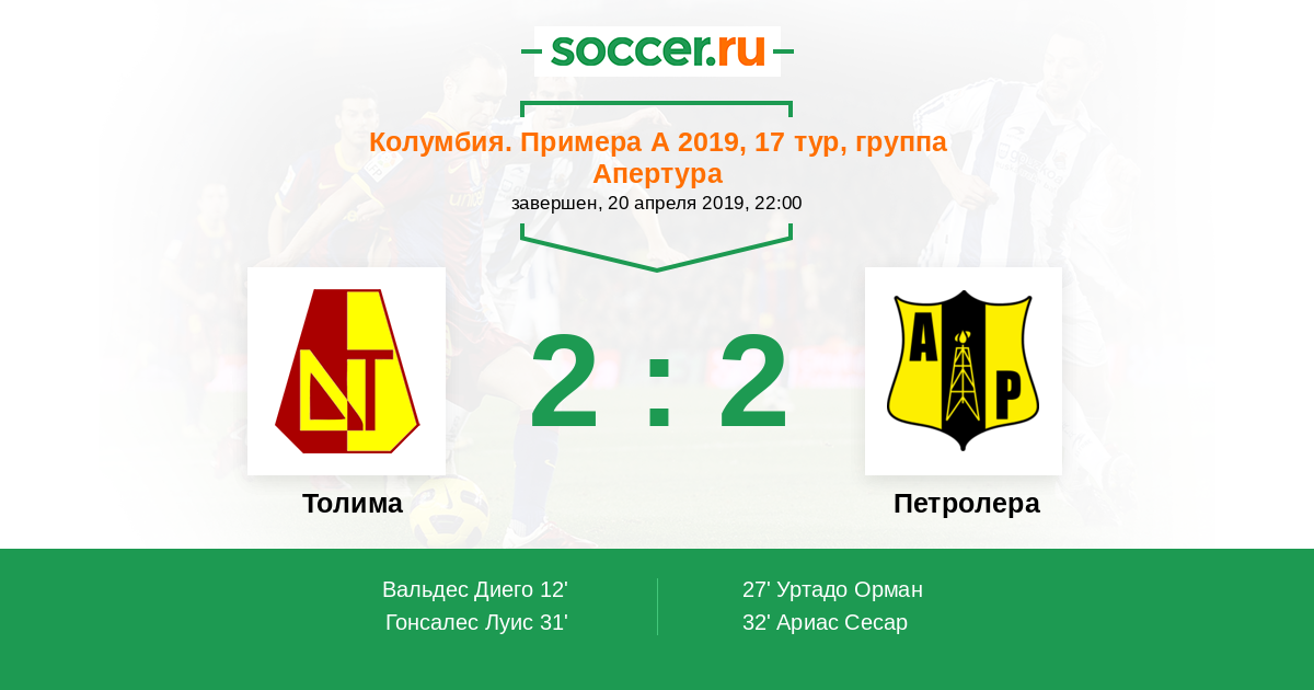 Протокол матча Толима против Петролера