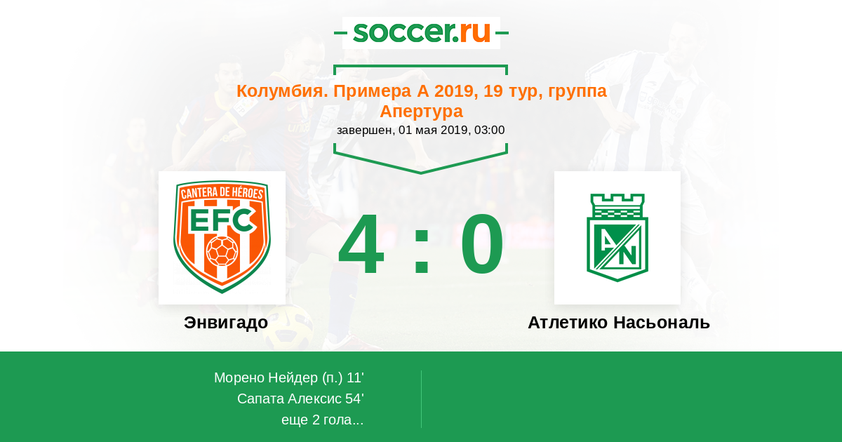 Протокол матча Энвигадо против Атлетико Насьональ