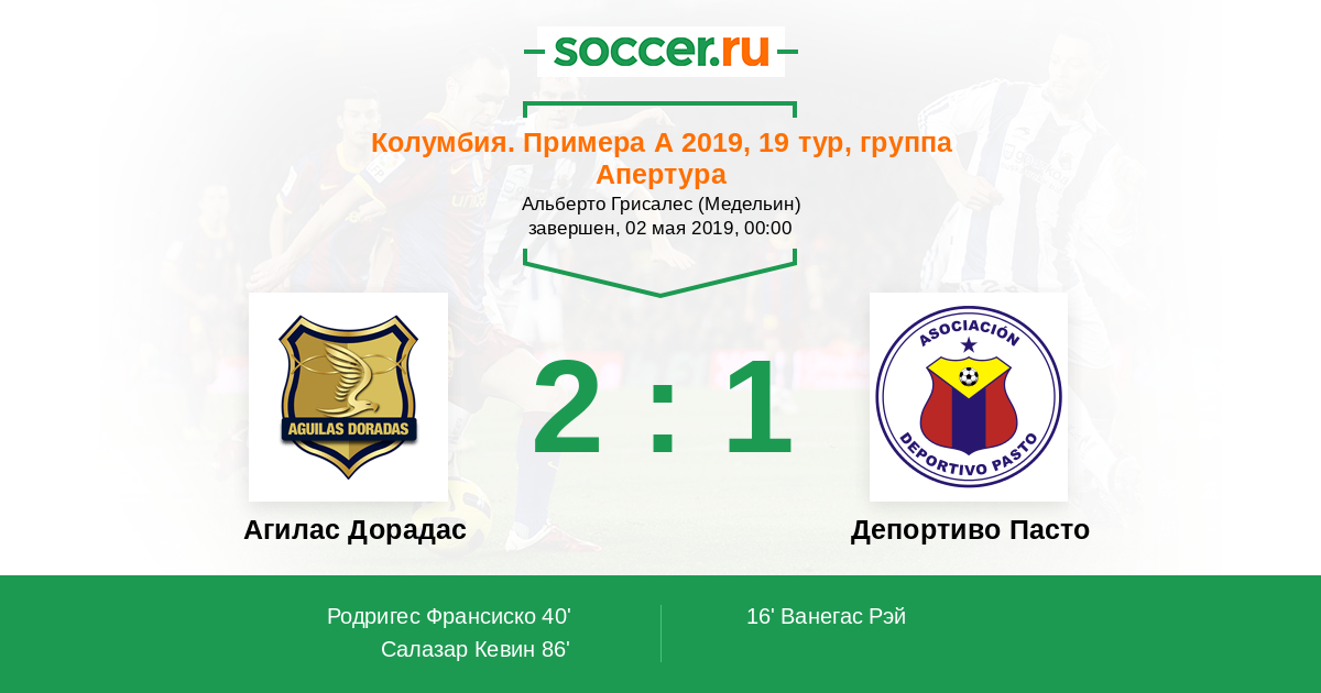 Протокол матча Агилас Дорадас против Депортиво Пасто
