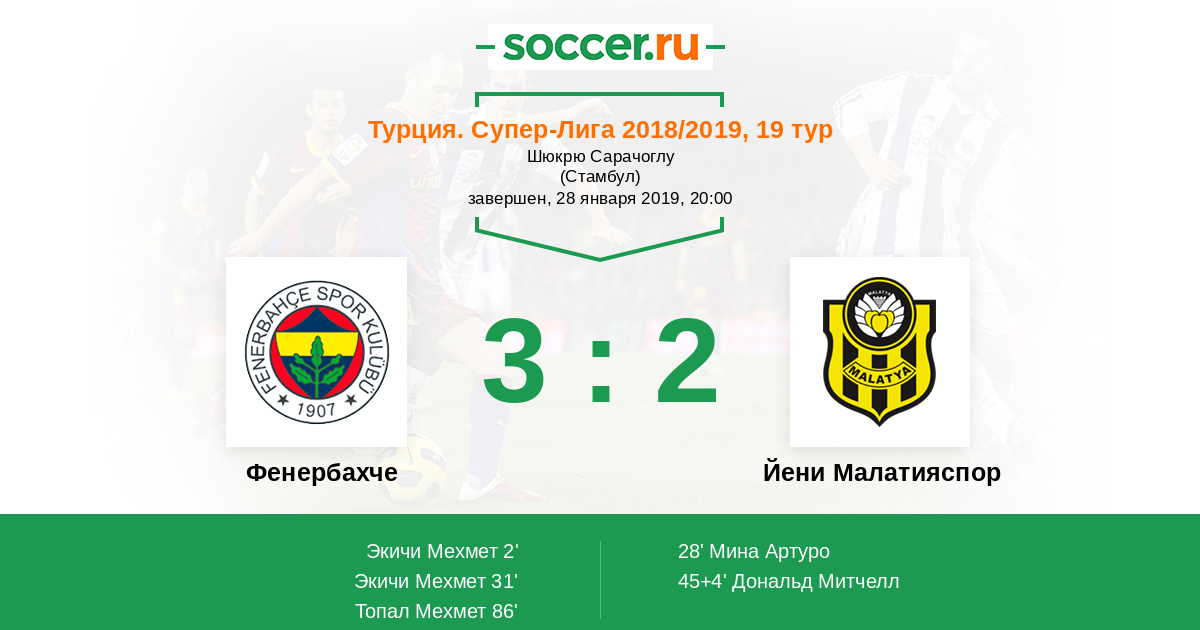 Протокол матча Фенербахче против Йени Малатияспор