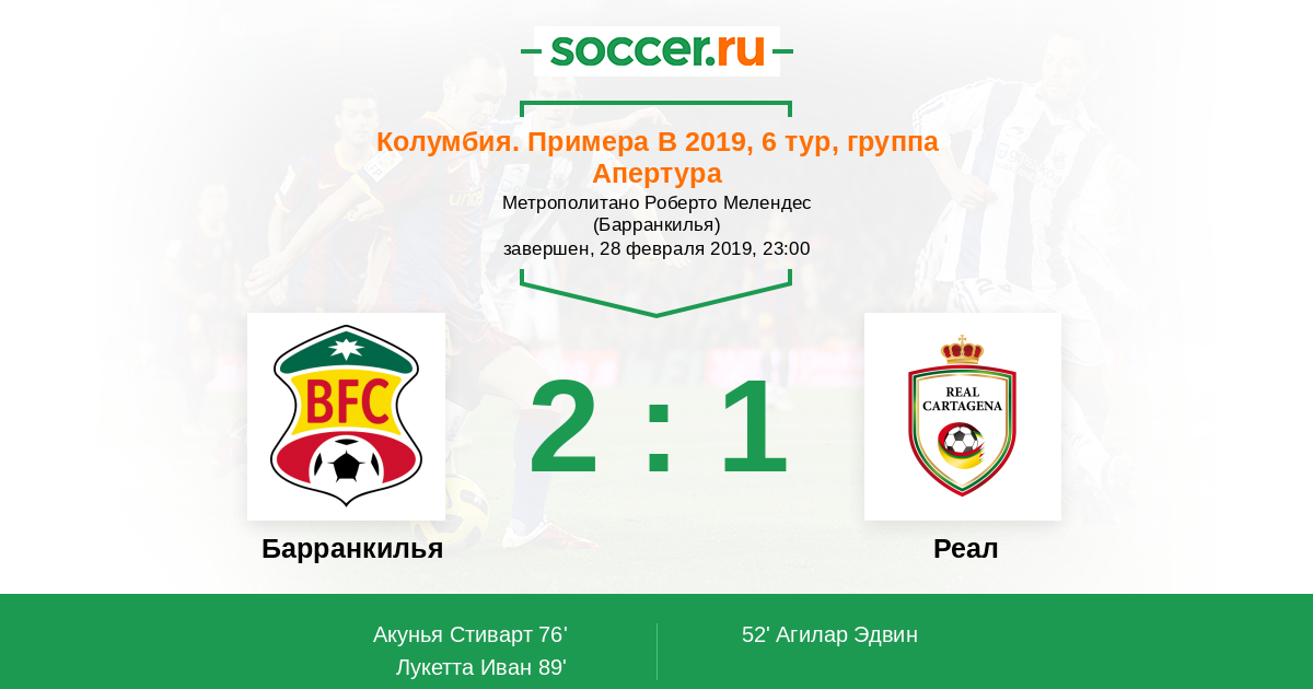 Протокол матча Барранкилья против Реал