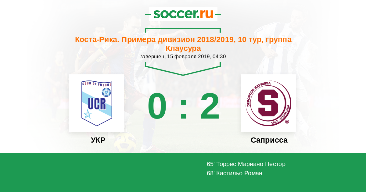 Протокол матча УКР против Саприсса