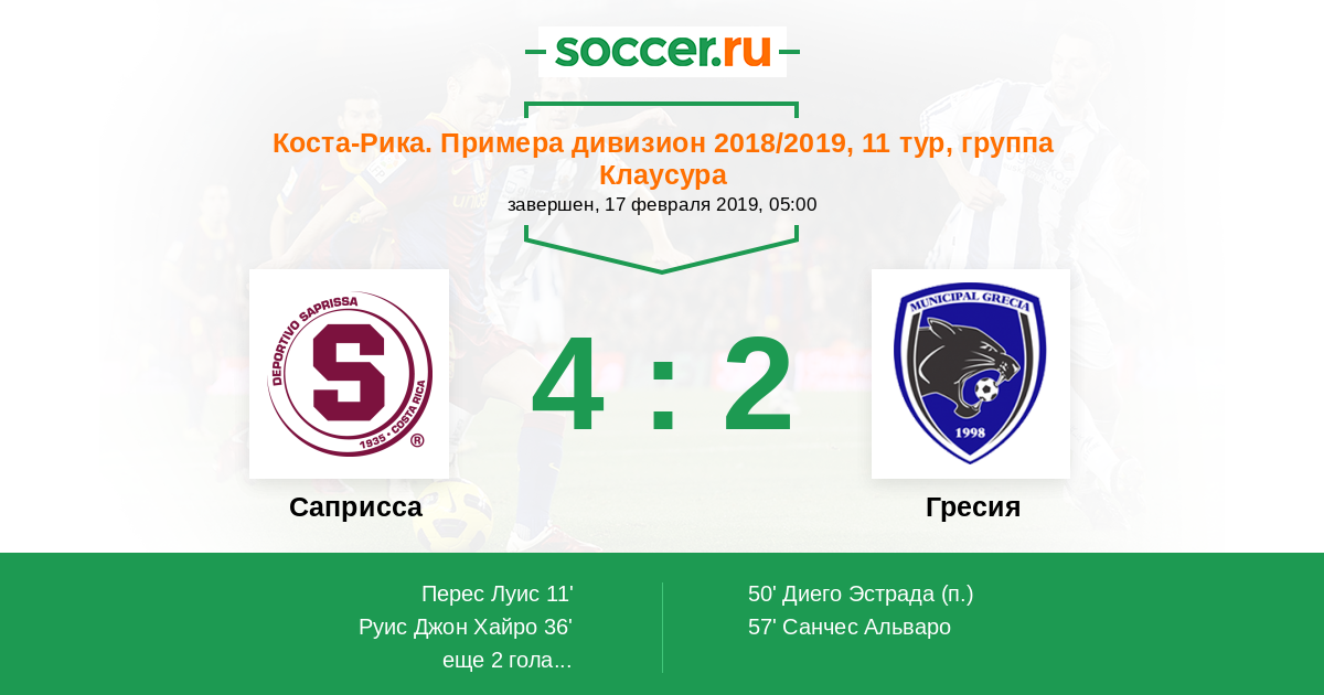 Протокол матча Саприсса против Гресия