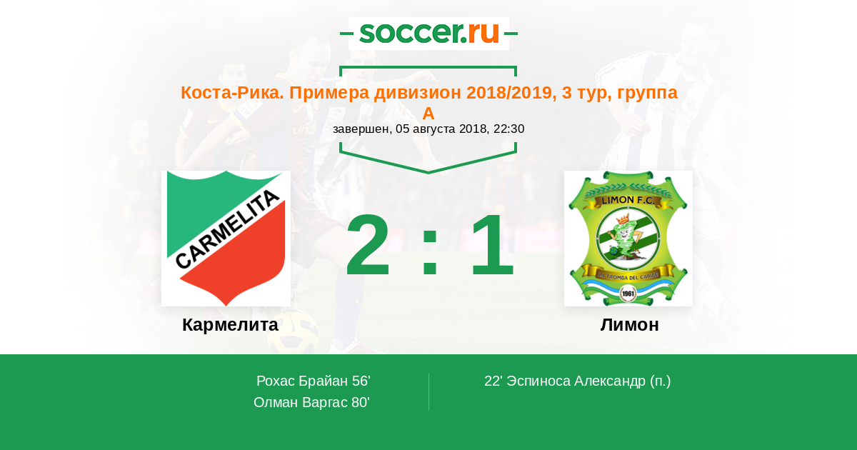 Протокол матча Кармелита против Лимон