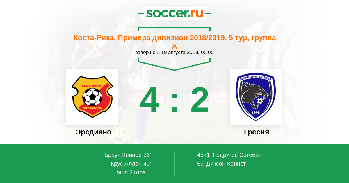 Протокол матча Эредиано против Гресия