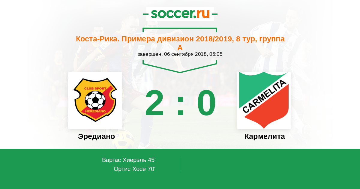 Протокол матча Эредиано против Кармелита