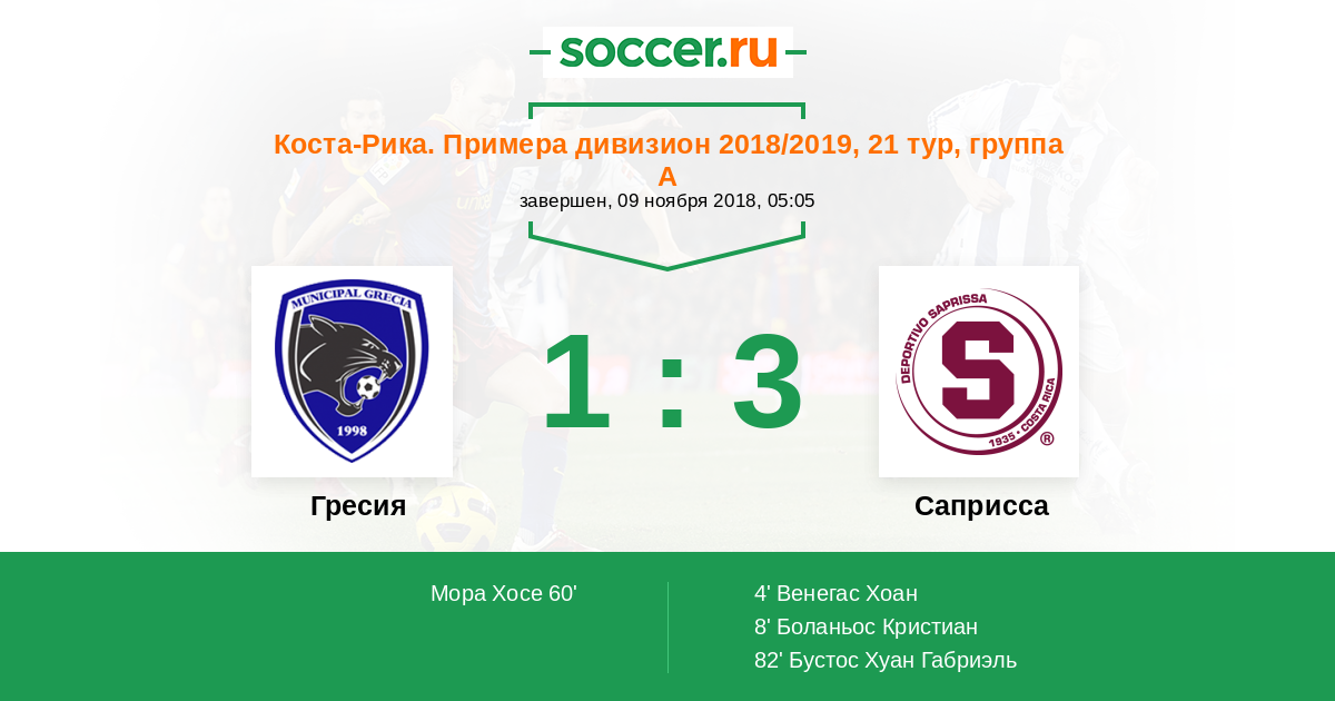 Протокол матча Гресия против Саприсса