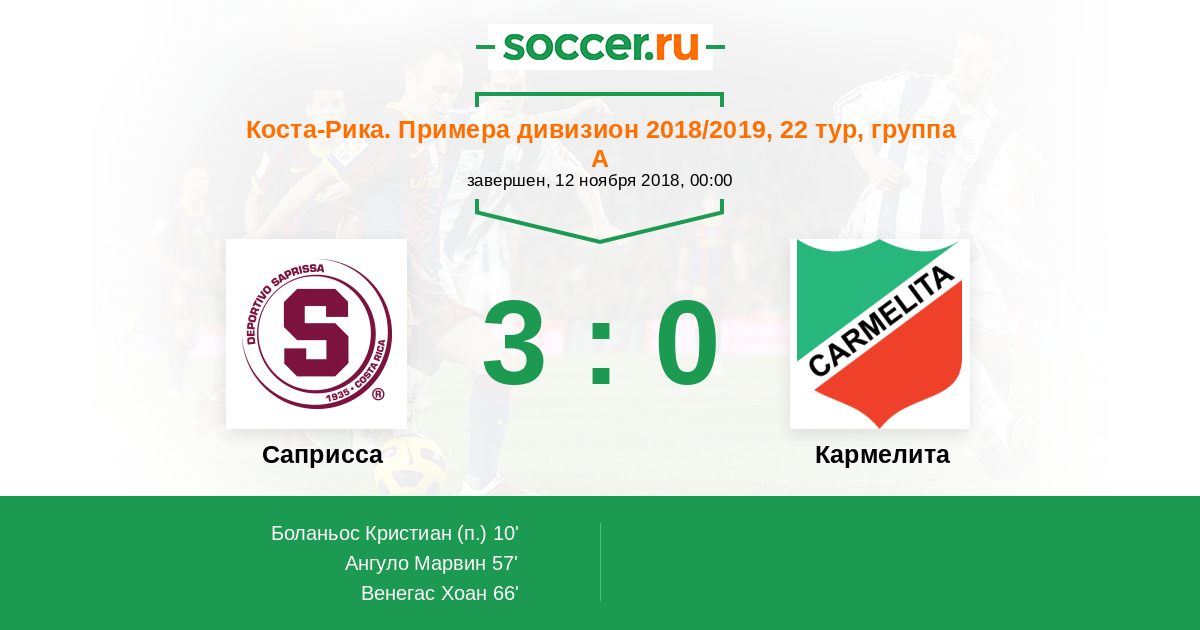 Протокол матча Саприсса против Кармелита