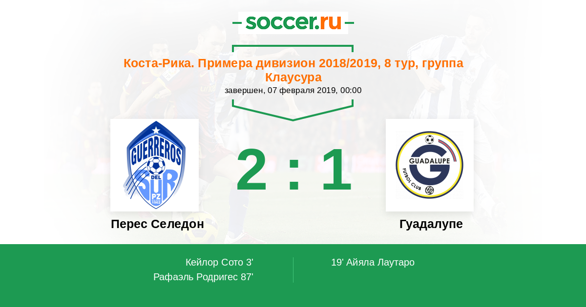 Протокол матча Зеледон против Гуадалупе