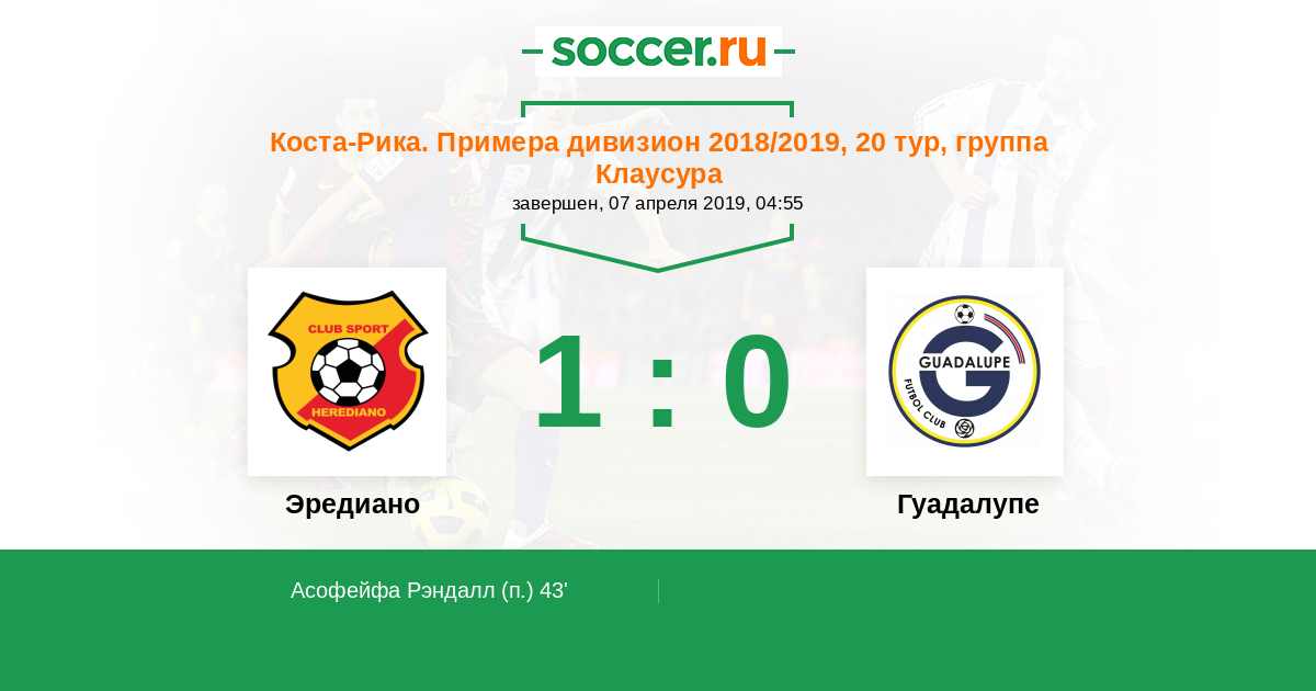 Протокол матча Эредиано против Гуадалупе