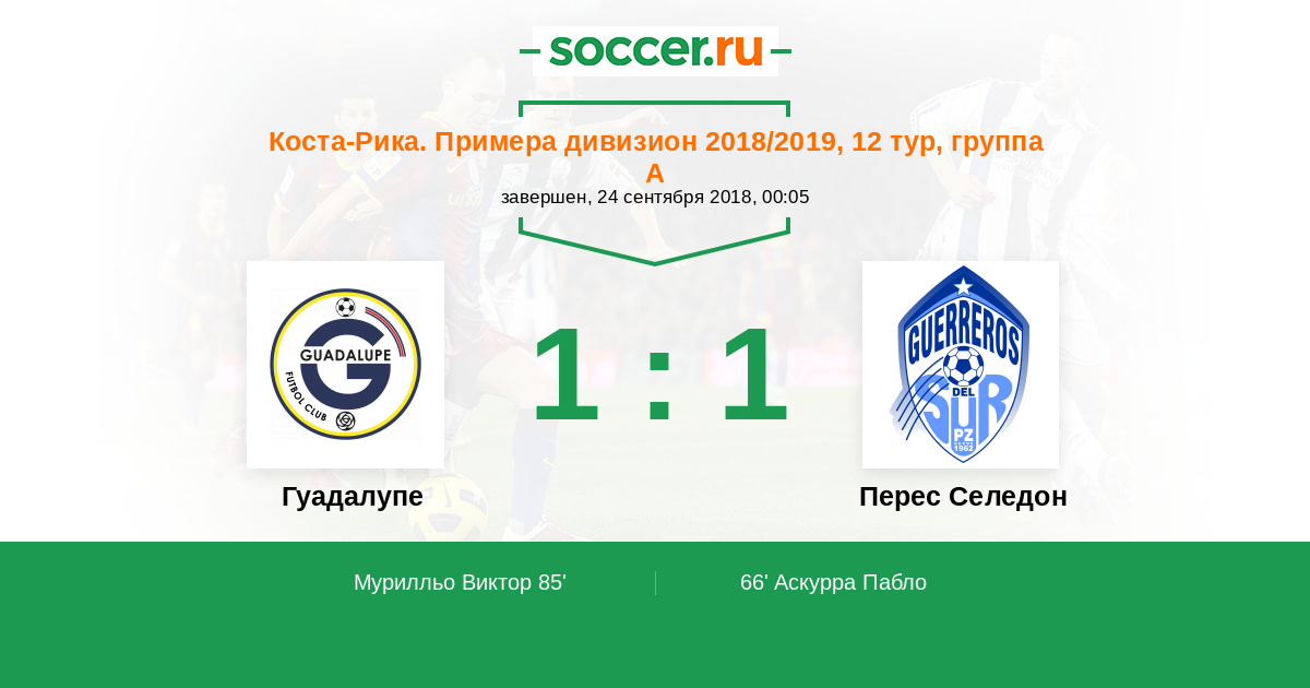 Протокол матча Гуадалупе против Зеледон