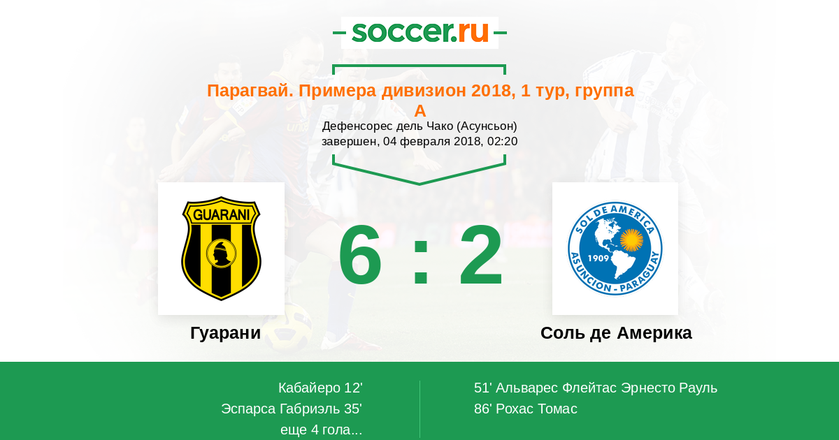 Протокол матча Гуарани против Соль де Америка