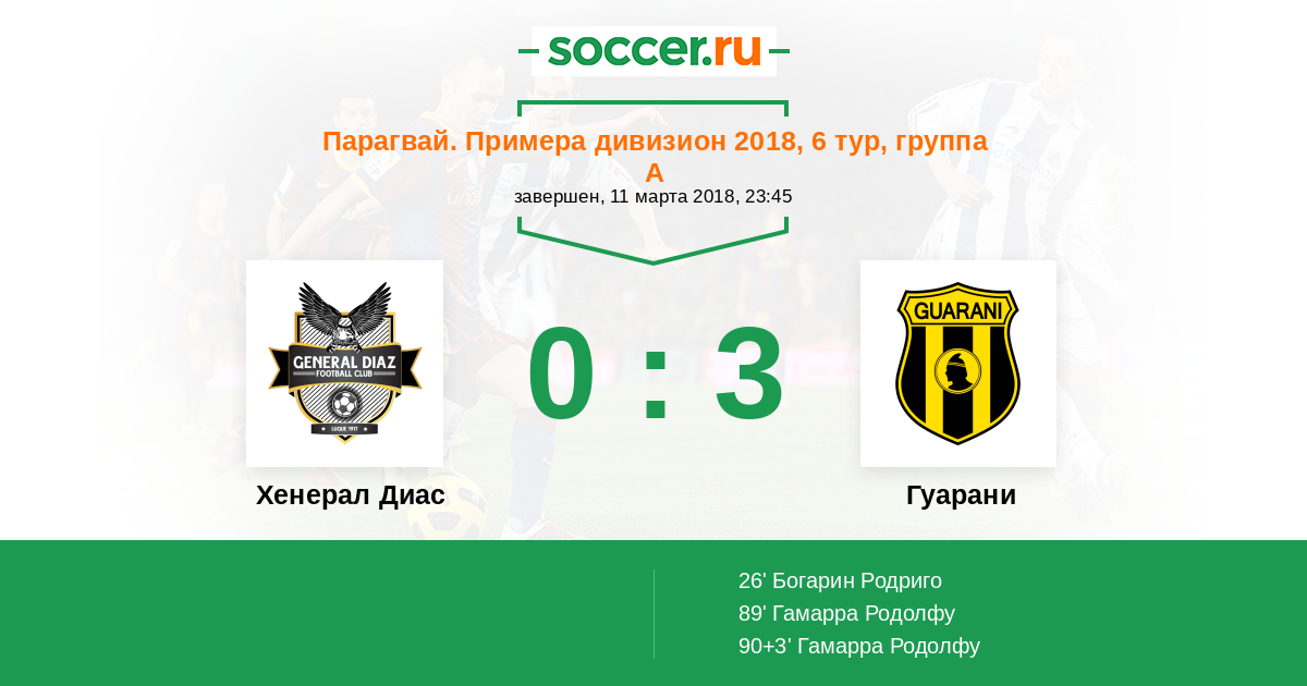 Протокол матча Хенерал Диас против Гуарани