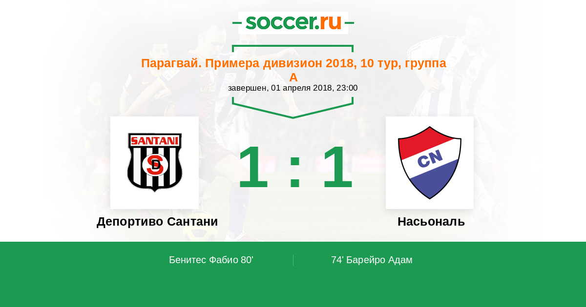Протокол матча Депортиво Сантани против Насьональ