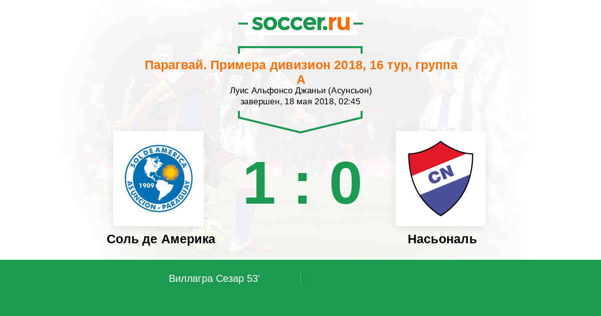 Протокол матча Соль де Америка против Насьональ