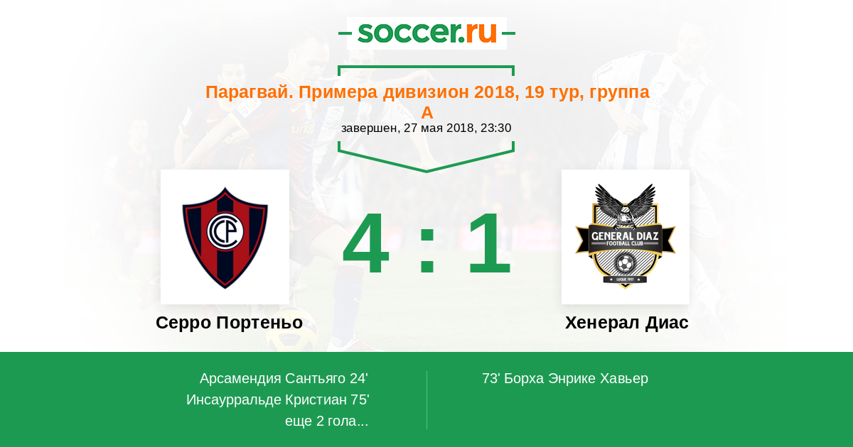 Протокол матча Серро Портеньо против Хенерал Диас